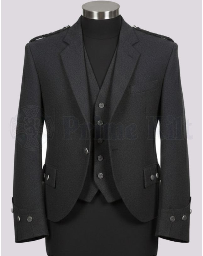 Argyle Kilt Jacket and Waistcoat in Charcoal Grey Wool