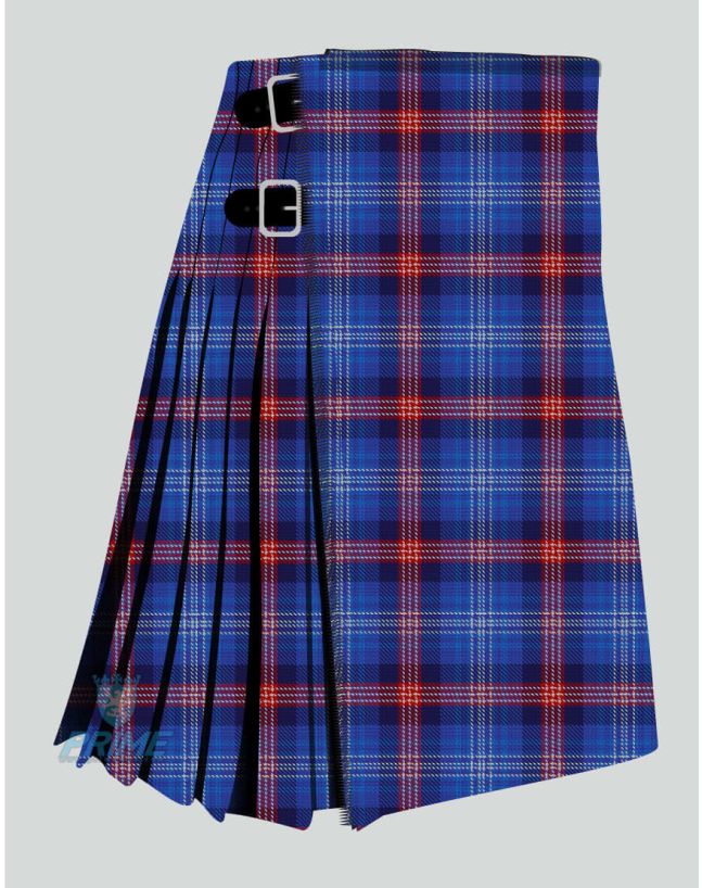 Elevate the love for Scottish tradition with this simple but eye-catching daughters of the american revolution tartan kilt. With a cool color combination and fine looks, this is going to turn some heads. It is made with pure acrylic wool to provide warm comfort with absolute durability. Adjustable leather straps make it a perfect fit and the rust-free hardware ensures that your kilt goes with you for a notably long time. Please place your order now to get it at a discount.