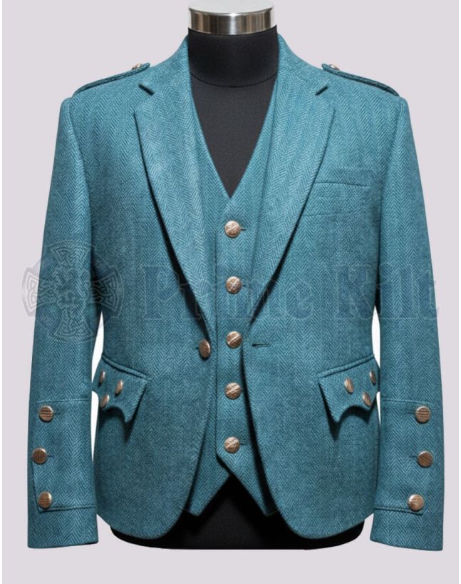 Step out in timeless style with the Lovat Blue Tweed Kilt Jacket and matching waistcoat. This classic Scottish jacket set is perfect for formal gatherings, weddings, or Highland celebrations. It offers the ideal blend of tradition and elegance. The soft Lovat blue color adds a fresh twist to your kilt attire, making you stand out with quiet confidence. A must-have for anyone wanting to look sharp and respectful of Scottish heritage.