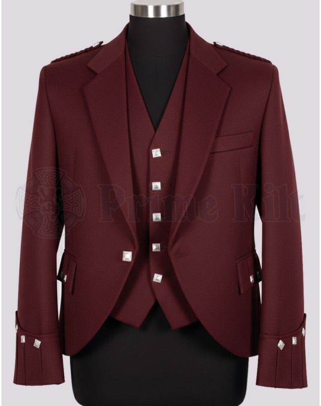 Mens Argyle Kilt Jacket and Waistcoat Maroon