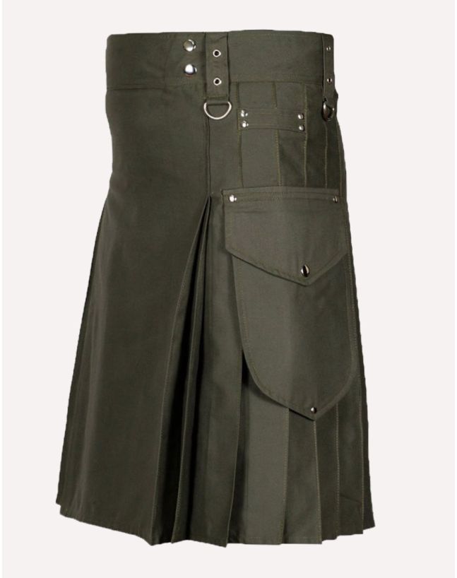 Olive Green Casual Utility Kilt