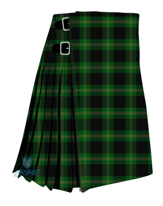 Elevate the love for Scottish tradition with this simple but eye-catching perry hunting green tartan kilt. With a cool color combination and fine looks, this is going to turn some heads. It is made with pure acrylic wool to provide warm comfort with absolute durability. Adjustable leather straps make it a perfect fit and the rust-free hardware ensures that your kilt goes with you for a notably long time. Please place your order now to get it at a discount.