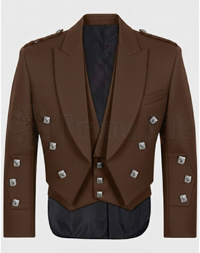 Prince Charlie Kilt Jacket and Waistcoat Brown – Classic Highland Style