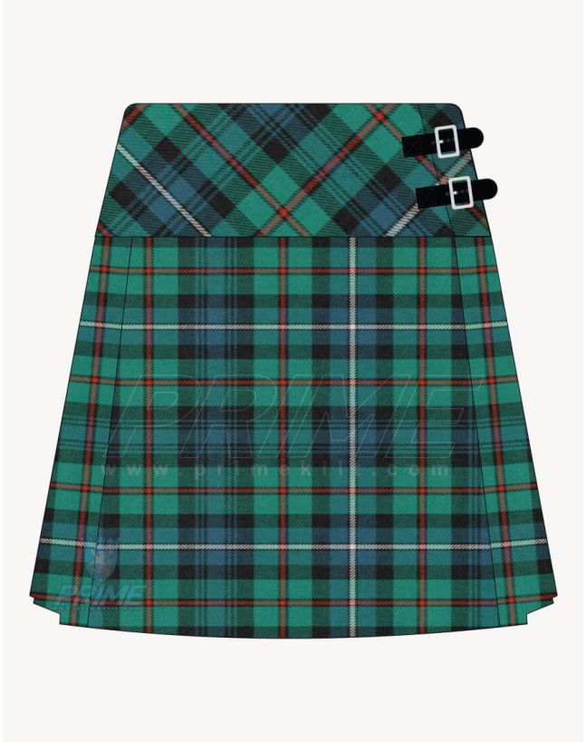 This skirt is more than just a piece of clothing. It honors the renowned Robertson clan with its ancient hunting tartan, known for deep greens, bold blues, and subtle red lines. The fabric feels soft on your skin and stays comfortable all day long. With neat pleats and a flattering fit, you will feel confident from the moment you put it on.