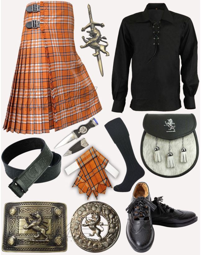 Tennessee Volunteer Orange Tartan Wedding Kilt Set is made of acrylic wool. Scottish Kilt Set pleats are sewn for a full swing. There are 3 rust free buckles and 100% Real Leather Straps for better fitting and beauty. This Casual Wear Kilt Set is easy to maintain, affordable and durable.
